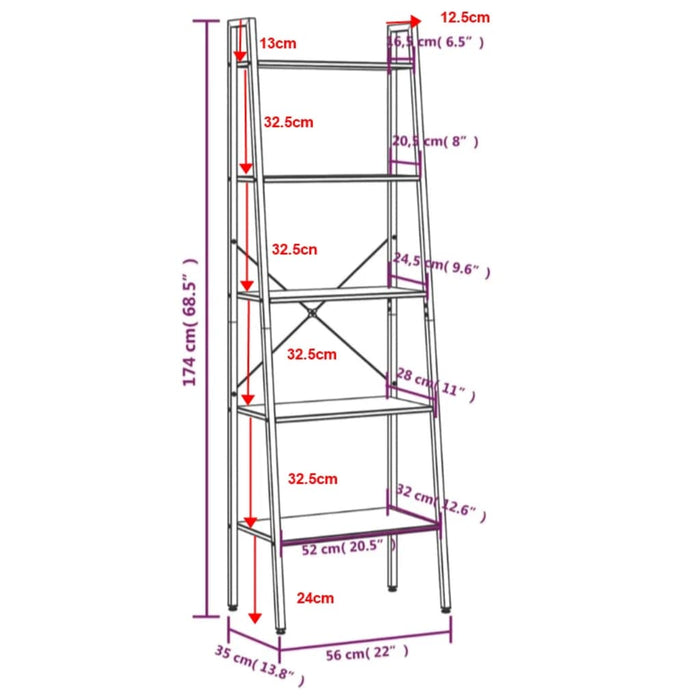 Scaffale Autoportante 5 Ripiani Marrone Scuro Nero 56x35x174 cm cod mxl 9447