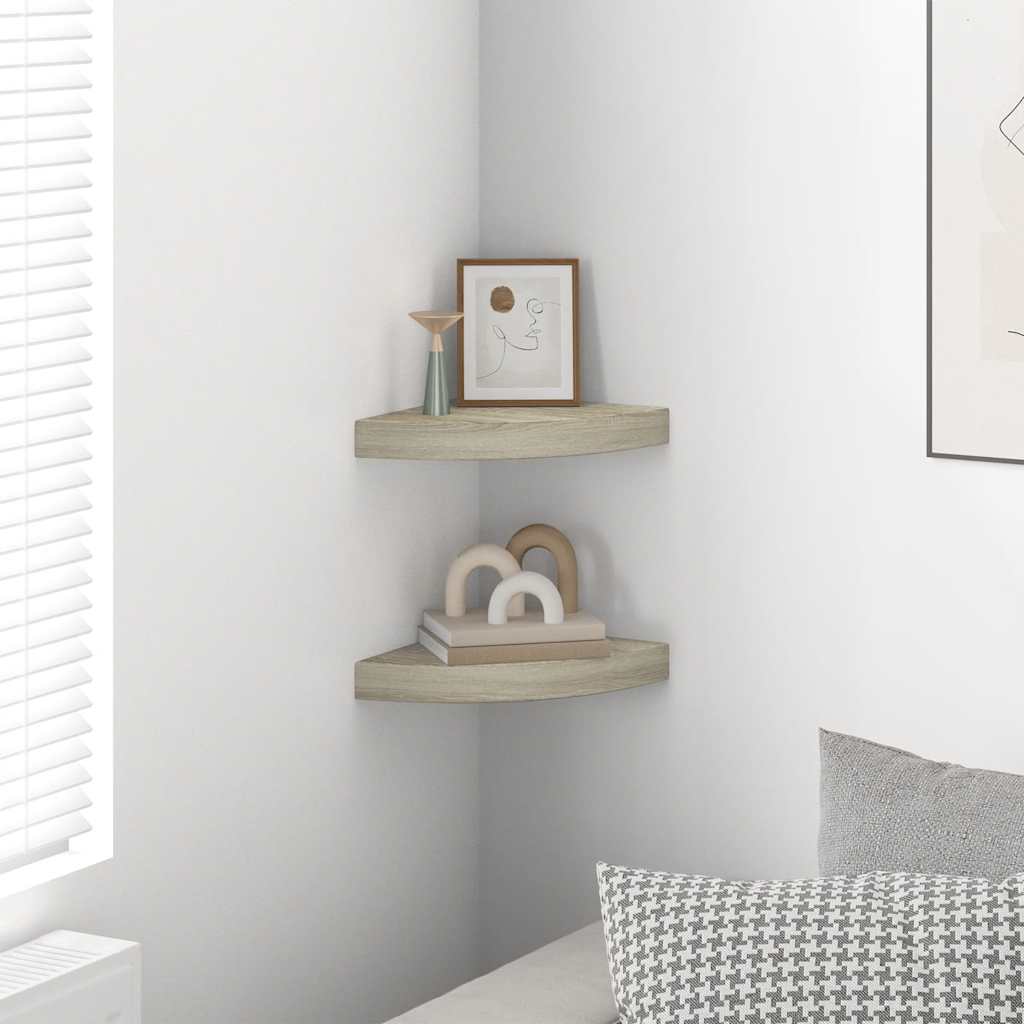 Scaffali Angolari a Parete 2 pz Rovere 25x25x3,8 cm in MDF 323905