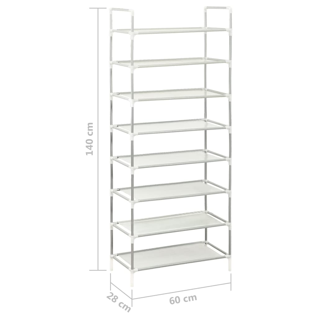 Scarpiera con 8 Ripiani Metallo e Tessuto non Tessuto Argento 330043