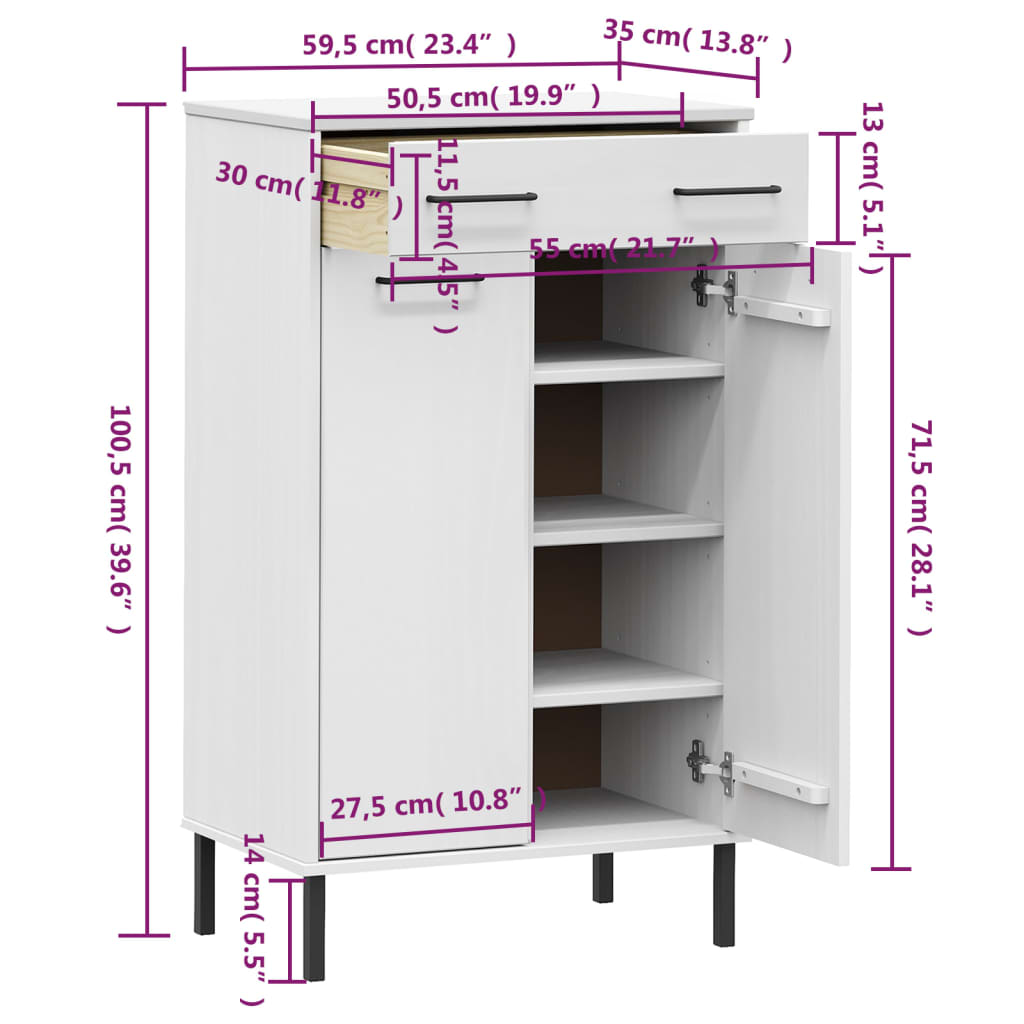 Scarpiera con Gambe Metallo Bianco Legno Massello di Pino OSLO 350987