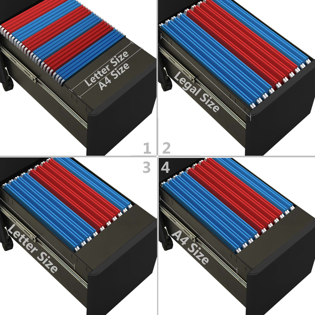 Questo armadietto da ufficio è realizzato in acciaio, il che lo rende resistente e facile da pulire. Con 3 cassetti e 1 serratura, questo schedario vi consente di ordinare i vostri fascicoli in diverse categorie e tenerli al sicuro. Ogni cassetto è dotato di 1 barra a sospensione rimovibile, che può essere utilizzata liberamente per riporre cartelline a sospensione in formato lettera, formato legale e A4. Lo schedario ha un vassoio portapenne, che può rendere il vostro desktop più ordinato. I cassetti con guide a sfera a 3 sezioni garantiscono un'adeguata apertura e chiusura. Anche quando contengono un carico maggiore, questi cassetti possono essere completamente estesi. Inoltre, gli angoli sinistro e destro dell'armadio sono arrotondati.
