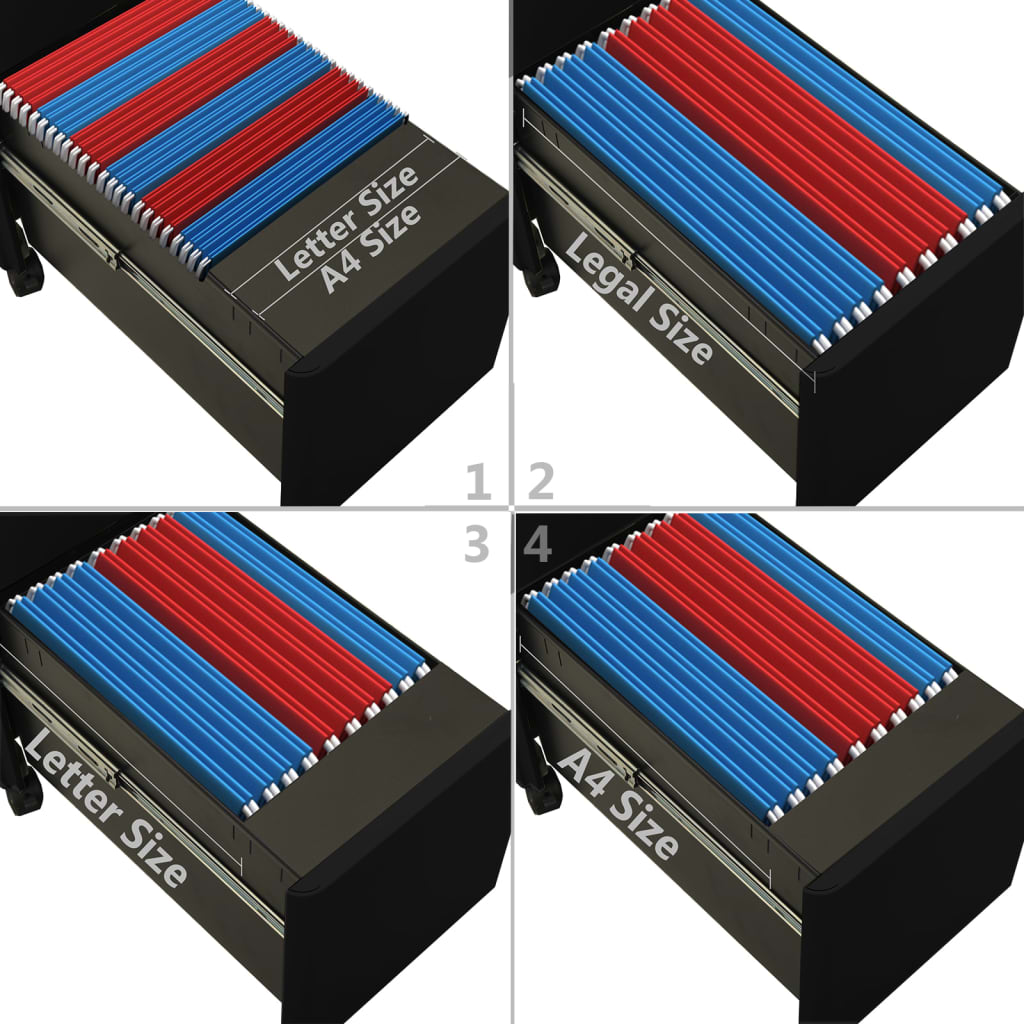 Questo armadietto da ufficio è realizzato in acciaio, il che lo rende resistente e facile da pulire. Con 3 cassetti e 1 serratura, questo schedario vi consente di ordinare i vostri fascicoli in diverse categorie e tenerli al sicuro. Ogni cassetto è dotato di 1 barra a sospensione rimovibile, che può essere utilizzata liberamente per riporre cartelline a sospensione in formato lettera, formato legale e A4. Lo schedario ha un vassoio portapenne, che può rendere il vostro desktop più ordinato. I cassetti con guide a sfera a 3 sezioni garantiscono un'adeguata apertura e chiusura. Anche quando contengono un carico maggiore, questi cassetti possono essere completamente estesi. Inoltre, gli angoli sinistro e destro dell'armadio sono arrotondati.