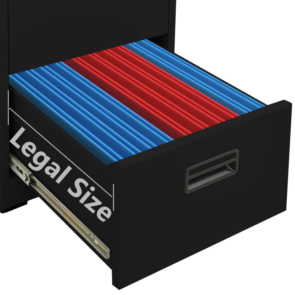 Questo armadietto da ufficio è realizzato in acciaio, il che lo rende resistente e facile da pulire. Con 3 cassetti e 1 serratura, questo schedario vi consente di ordinare i vostri fascicoli in diverse categorie e tenerli al sicuro. Ogni cassetto è dotato di 1 barra a sospensione rimovibile, che può essere utilizzata liberamente per riporre cartelline a sospensione in formato legale e A4. I cassetti con guide a sfera a 3 sezioni garantiscono un'adeguata apertura e chiusura. Anche quando contengono un carico maggiore, questi cassetti possono essere completamente aperti.