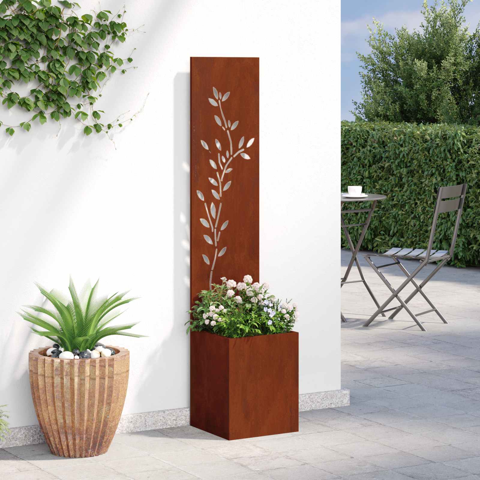 - Costruzione in Acciaio Robustissimo Fatto in acciaio resistente, questo pannello da giardino è super robusto e perfetto per l'esterno. La scelta dell'acciaio assicura che sia in grado di affrontare tutte le condizioni atmosferiche, offrendo anni di privacy e decorazione.