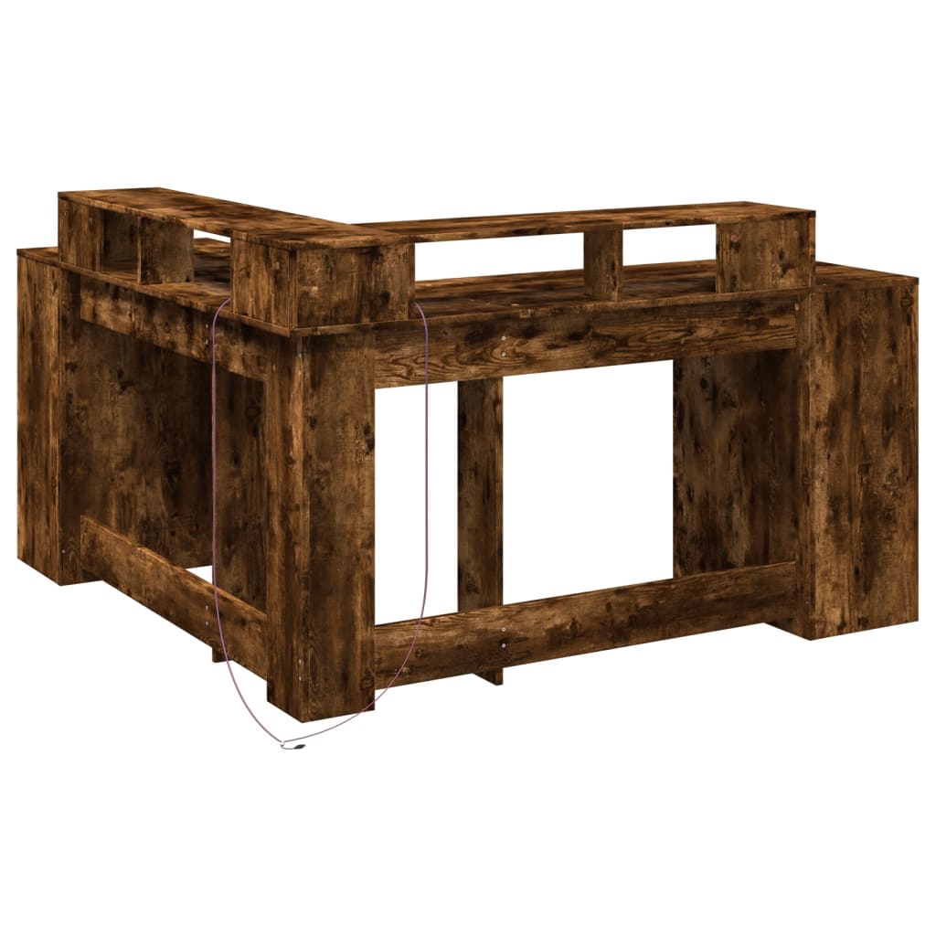 Scrivania con Luci LED Rovere Fumo 152x152x91 cm in Truciolato 3309460