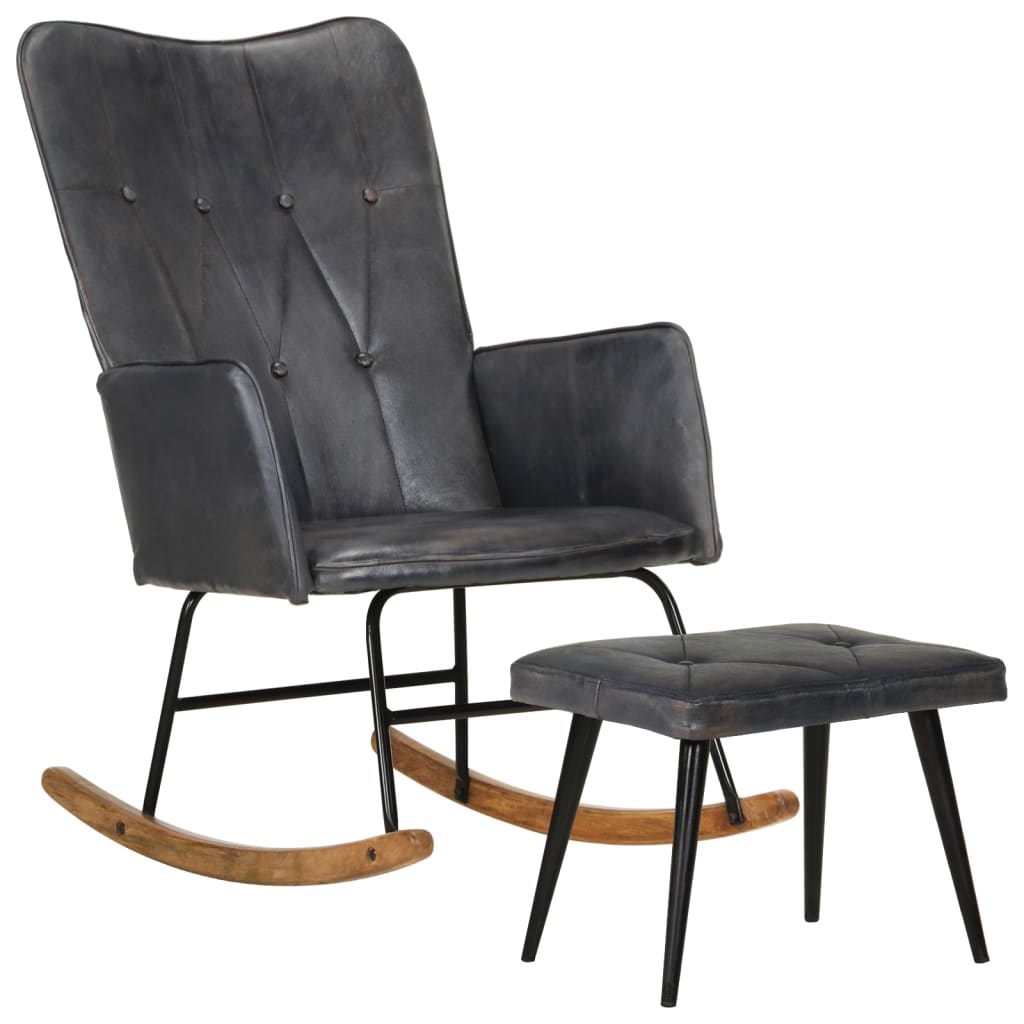Sedia a Dondolo con Poggiapiedi Grigio in Vera Pelle 339697