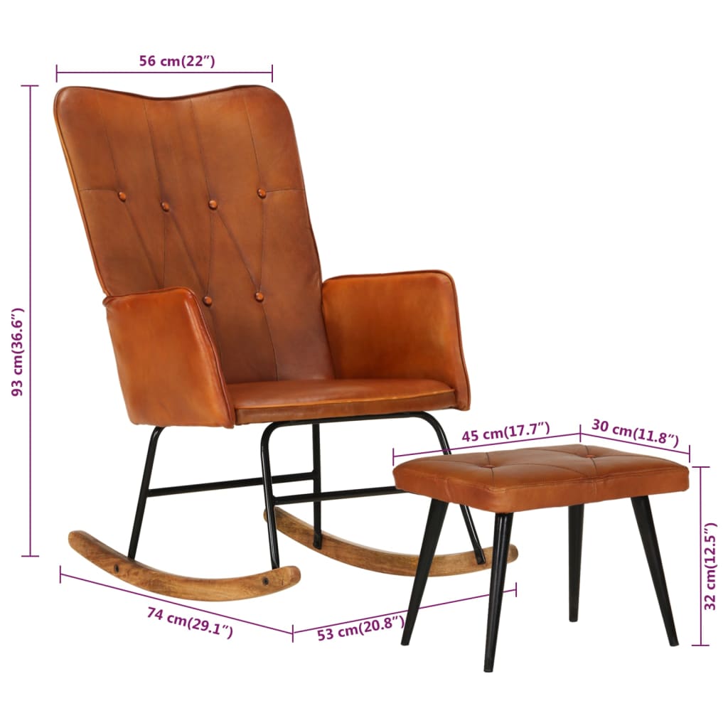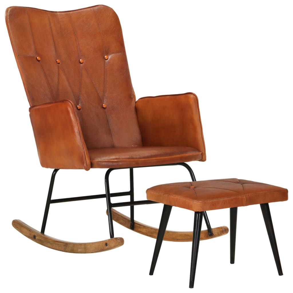 Sedia a Dondolo con Poggiapiedi Marrone Chiaro in Vera Pelle 339695