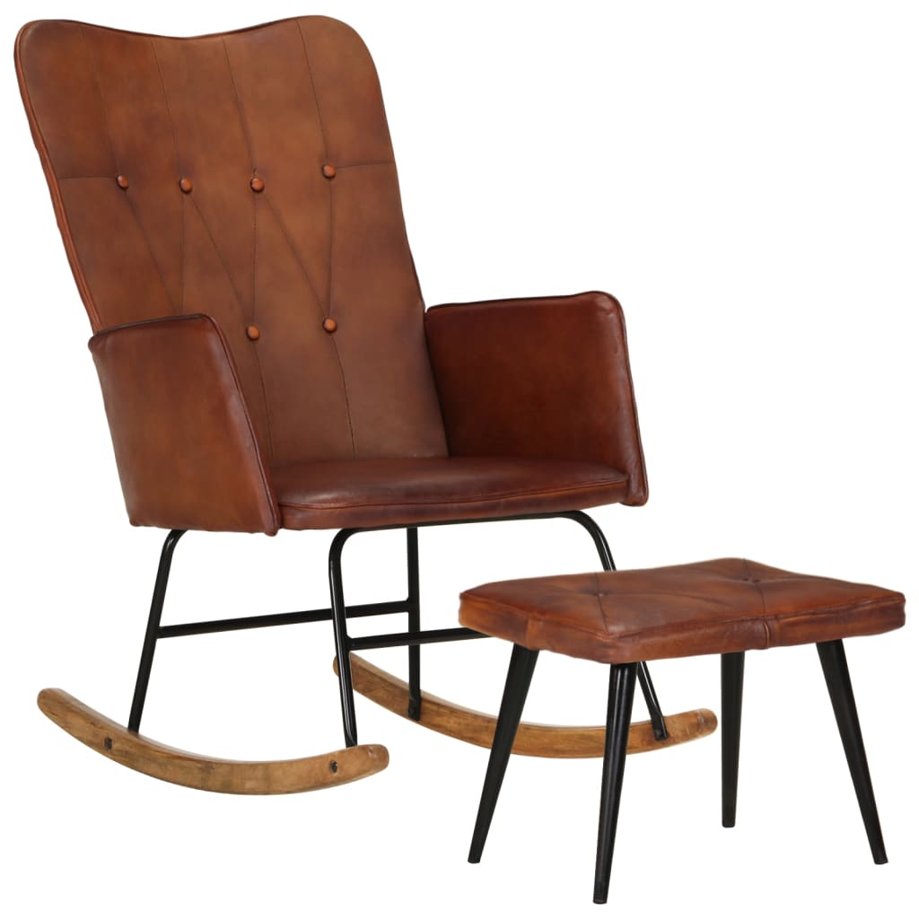 Sedia a Dondolo con Poggiapiedi Marrone in Vera Pelle 339696
