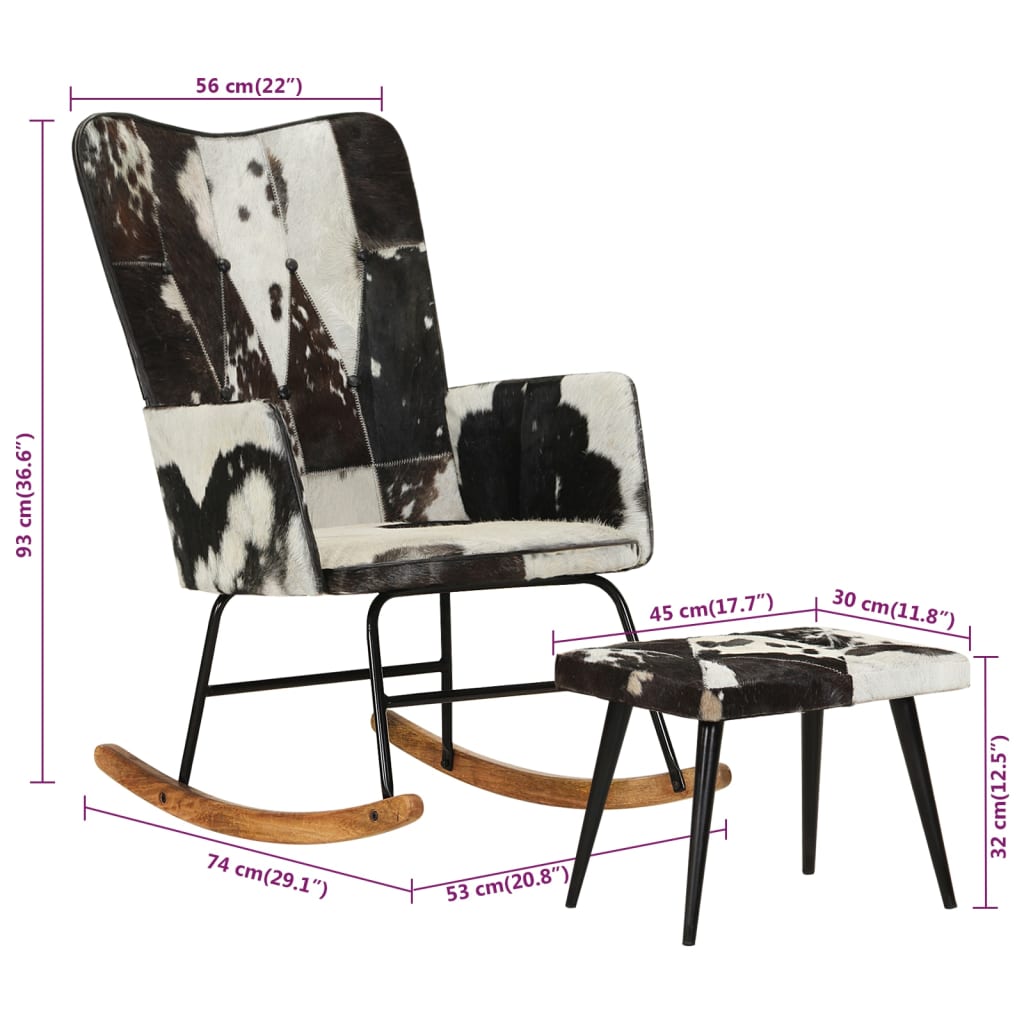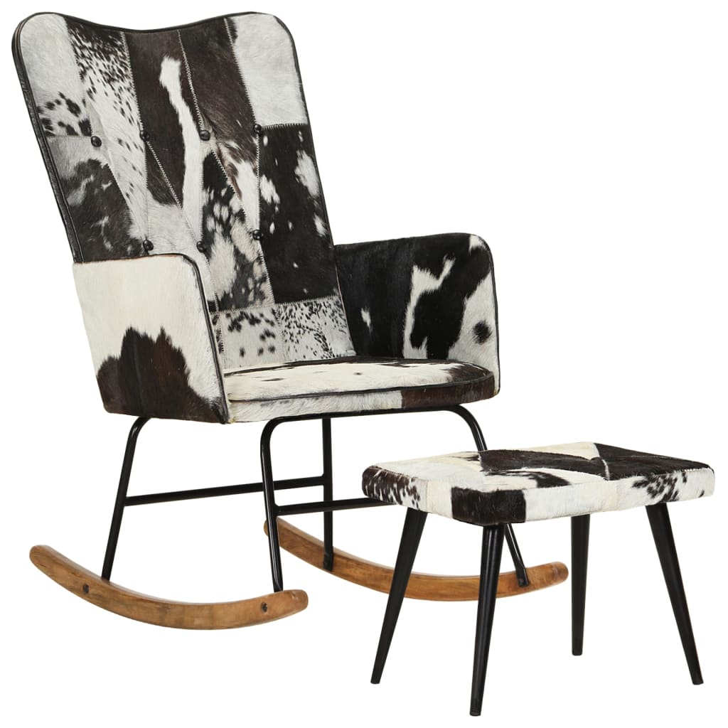 Sedia a Dondolo con Poggiapiedi Nero in Vera Pelle 339706