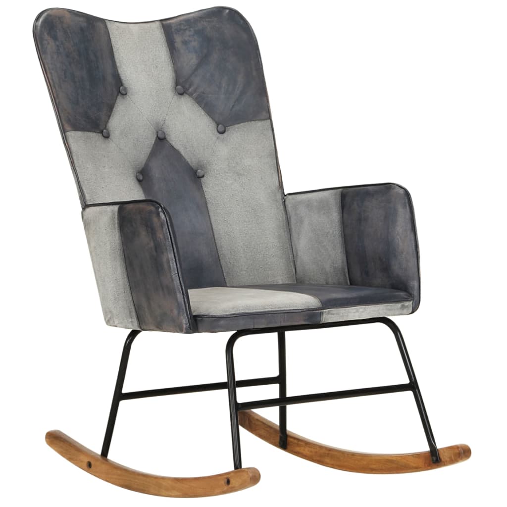 Sedia a Dondolo Grigia in Vera Pelle e Tela 339693