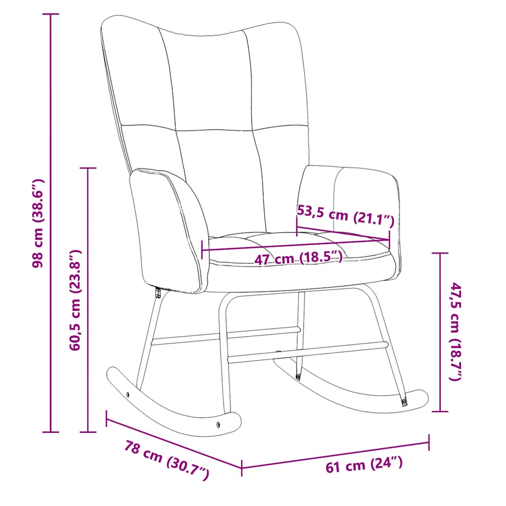 Caratterizzata da un design a blocchi, questa poltrona relax è esteticamente gradevole. Grazie all'imbottita spessa in gommapiuma, rivestita in velluto morbido al tatto, potrete godervi il tempo libero nel massimo comfort. Con il design lungo dei binari a dondolo, la poltrona non si ribalta facilmente. Inoltre, supportata da struttura e gambe in acciaio, insieme a binari a dondolo in legno, la sedia da soggiorno è stabile e durevole.