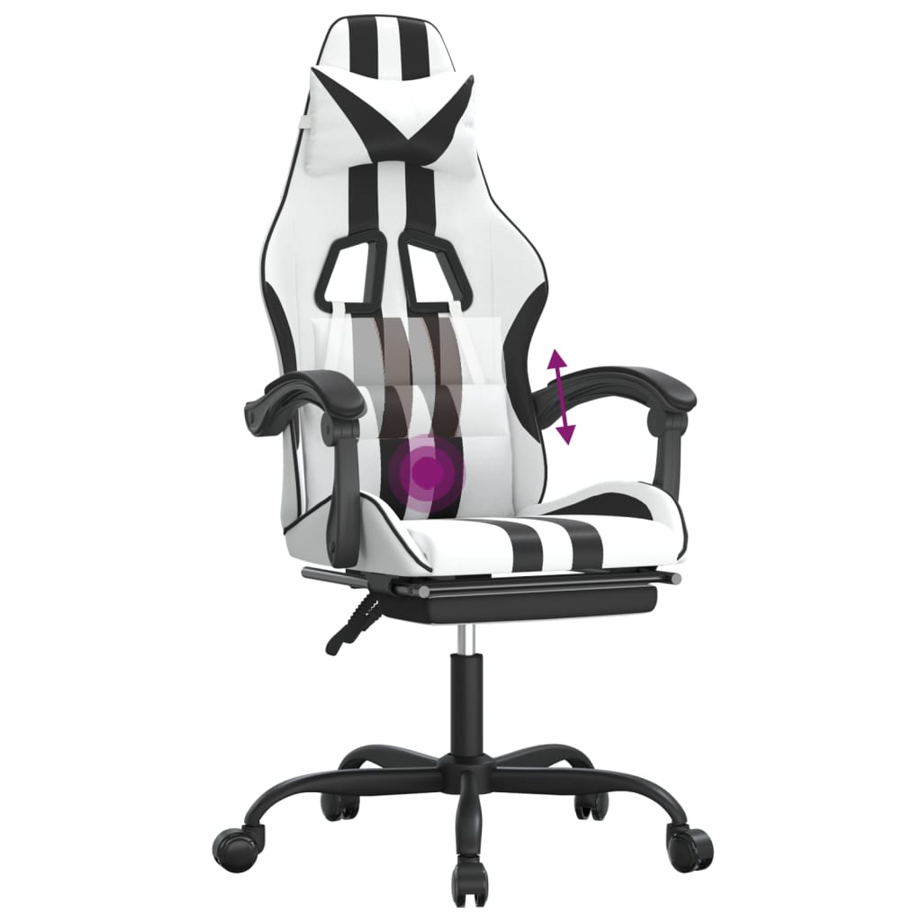 Sedia da Gaming Girevole Poggiapiedi Bianco e Nero Similpelle 349541