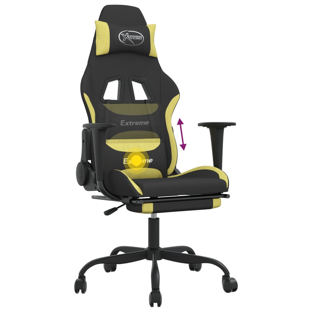 Sedia da Gaming Massaggio e Poggiapiedi Nero e Verde Chiaro 345486