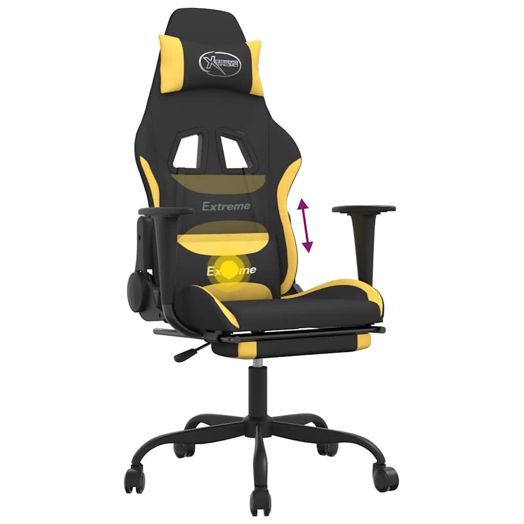 Sedia da Gaming Massaggio e Poggiapiedi Tessuto Nero e Giallo 345484
