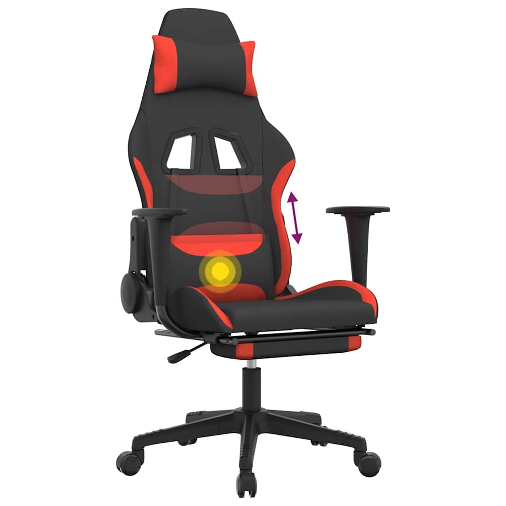 Sedia da Gaming Massaggio e Poggiapiedi Tessuto Nero e Rosso 345509