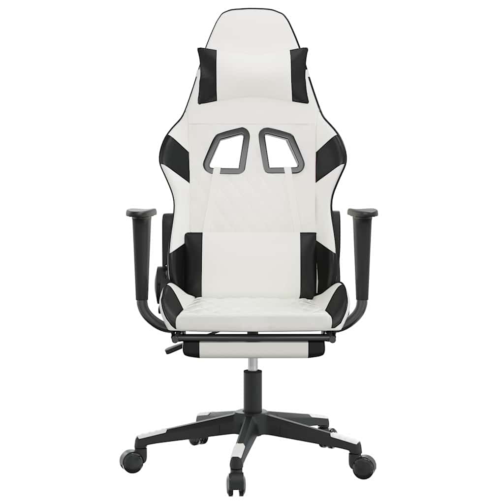 Sedia da Gaming Massaggio Poggiapiedi Bianco e Nero Similpelle 345531