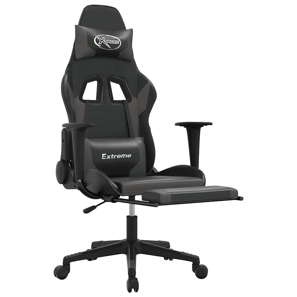 Sedia da Gaming Massaggio Poggiapiedi Nero e Grigio Similpelle 345461