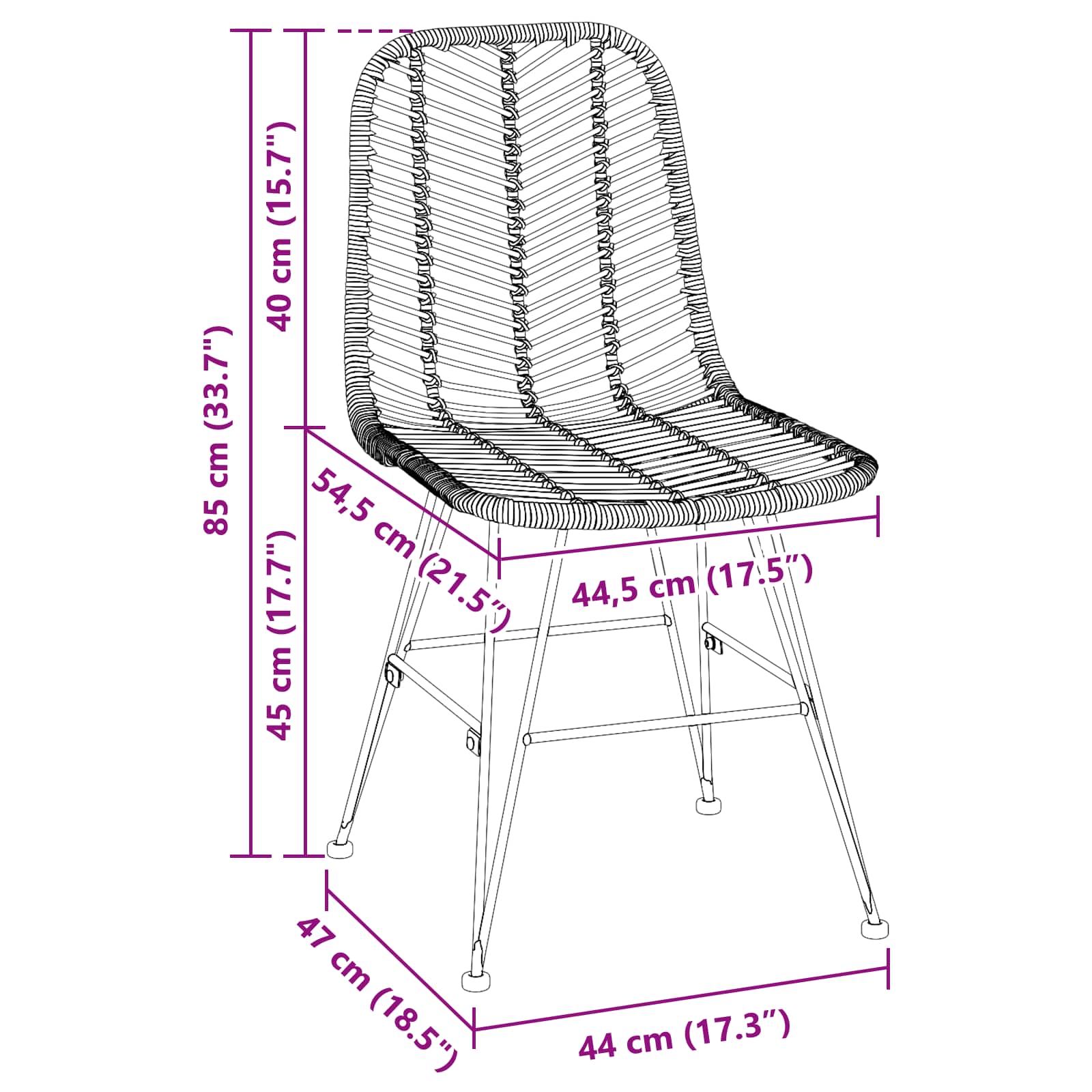 Sedia da pranzo 2 pcs Nero 44 x 47 x 85 cm Rattan e Ferro 42011551