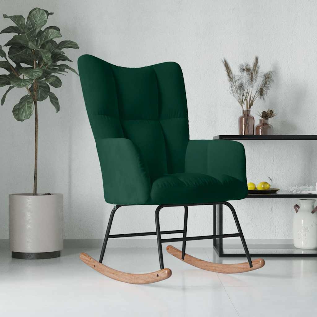 Caratterizzata da un design a blocchi, questa poltrona relax è esteticamente gradevole. Grazie all'imbottita spessa in gommapiuma, rivestita in velluto morbido al tatto, potrete godervi il tempo libero nel massimo comfort. Con il design lungo dei binari a dondolo, la poltrona non si ribalta facilmente. Inoltre, supportata da struttura e gambe in acciaio, insieme a binari a dondolo in legno, la sedia da soggiorno è stabile e durevole.