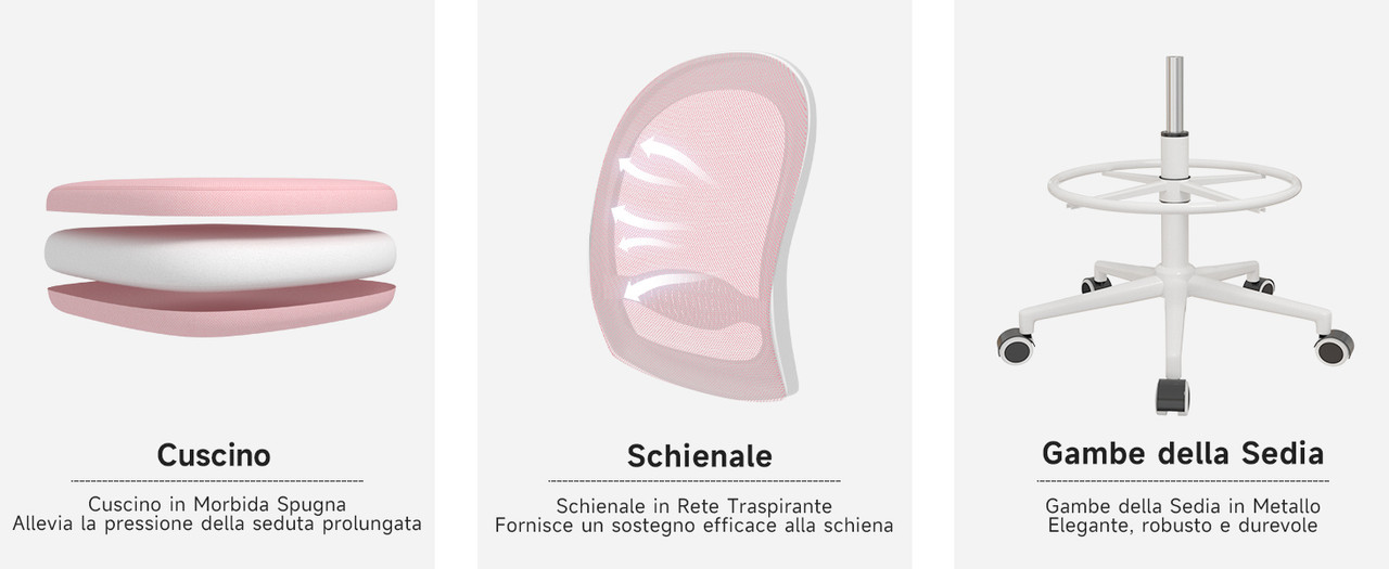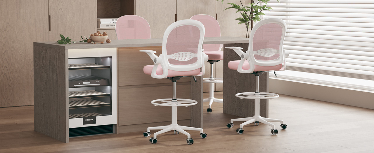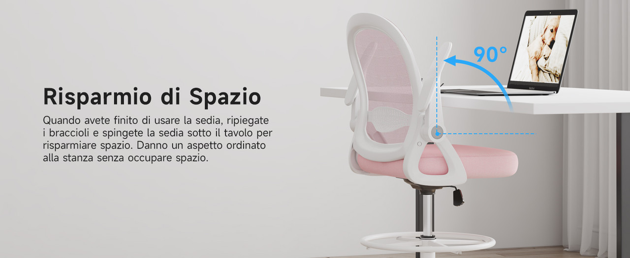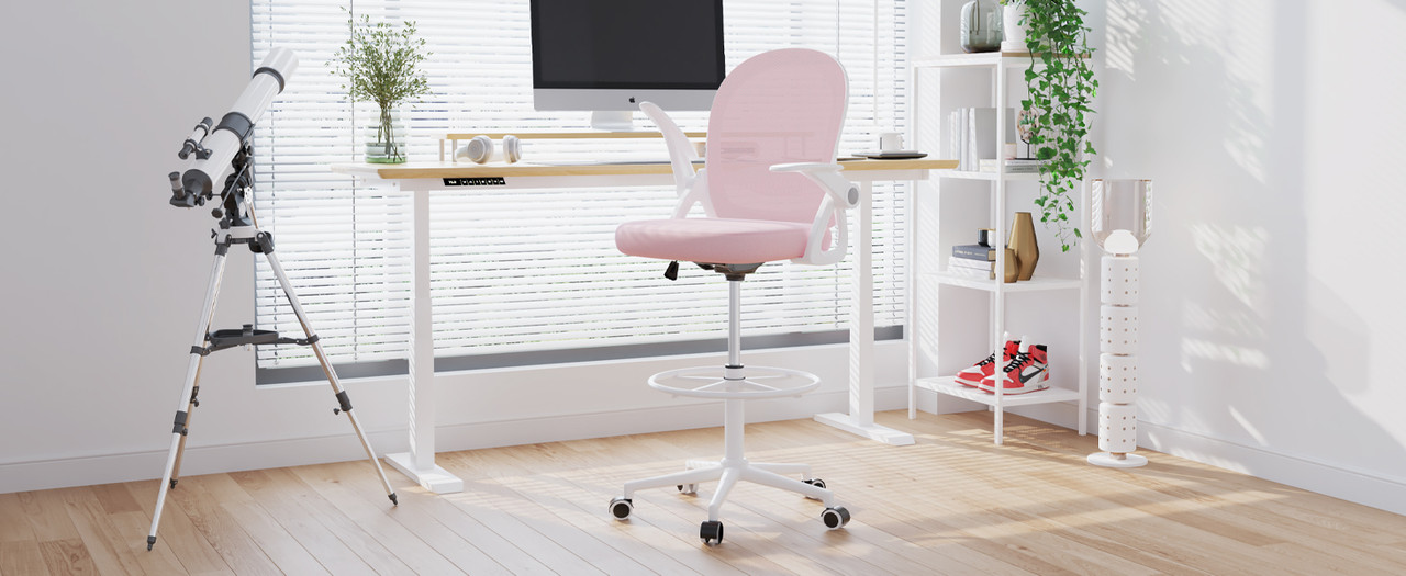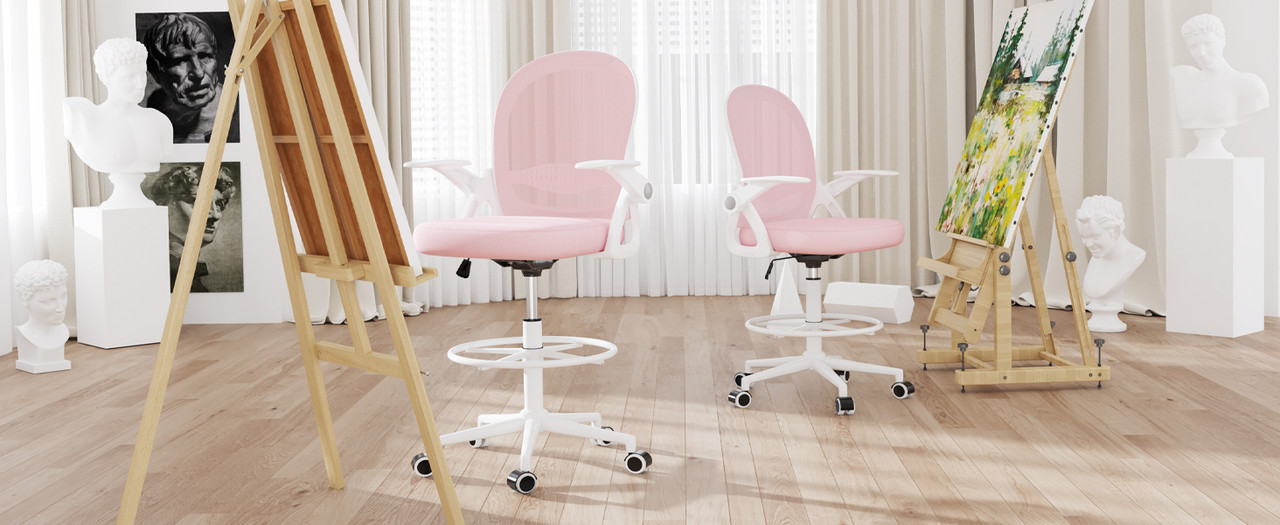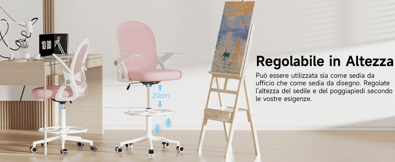 Sedia ufficio altezza alta - Mesh Drafting Chair - Altezza e Poggiapiedi Regolabili - braccioli regolabili - Capacit¨¤ di Carico 120 kg - Rosa