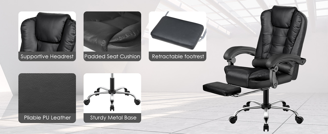 Sedia Ufficio con Poggiapiedi Telescopico - RATTANTREE - Altezza Regolabile - Braccioli Imbottiti - Nero