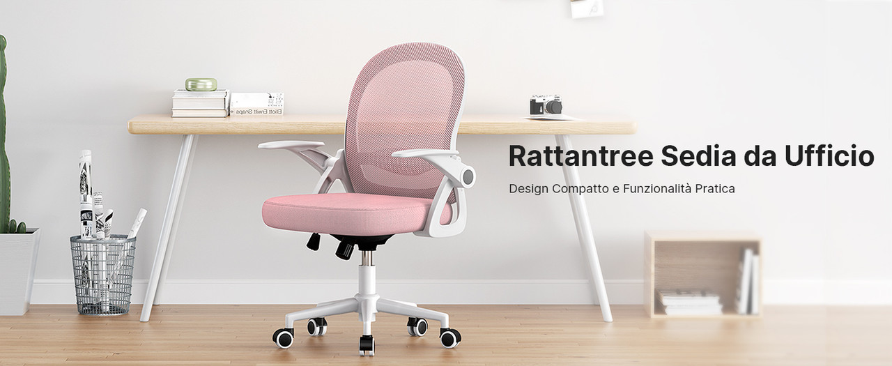 Sedia Ufficio con Supporto Lombare - RATTANTREE - Sedia Ufficio da Scrivania ergonomica Braccioli 90¡ã Regolabile - Rosa