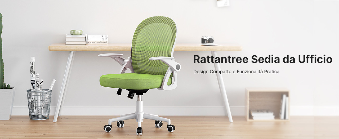 Sedia Ufficio con Supporto Lombare - RATTANTREE - Sedia Ufficio da Scrivania ergonomica Braccioli 90¡ã Regolabile - Verde
