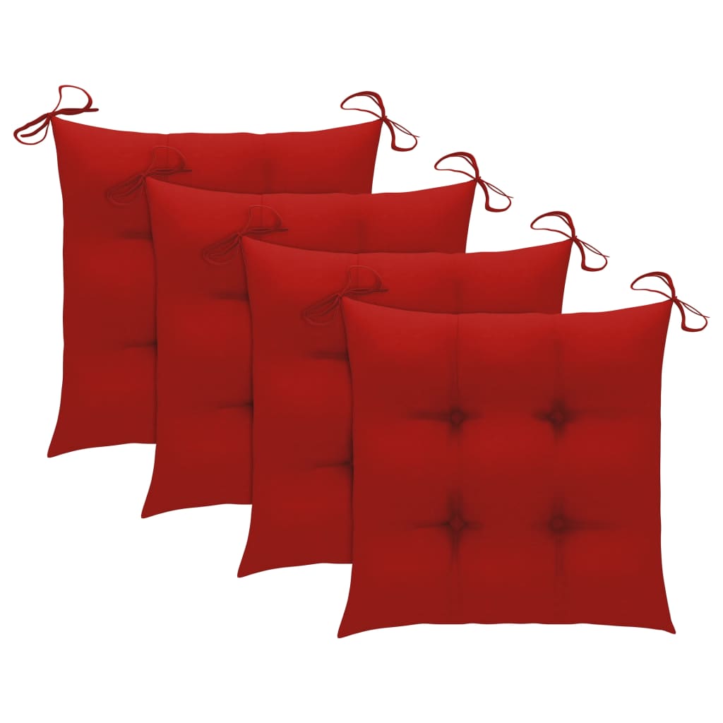 Sedie da Giardino con Cuscini Rossi 4 pz Legno Massello di Teak 3065638