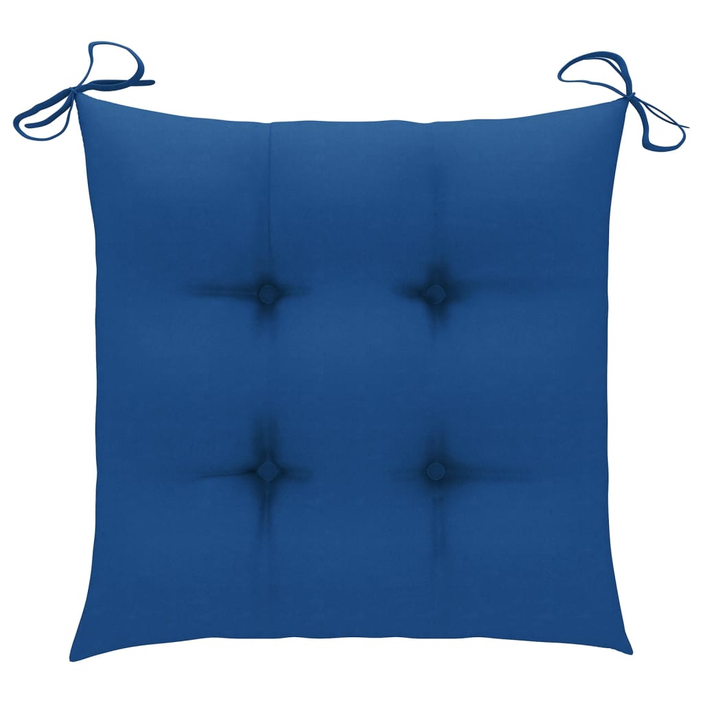 Queste sedie da giardino sono realizzate in legno massello di acacia, materiale che le rende robuste e resistenti. Il legno massello di acacia è in grado di sostenere pesi elevati e di resistere al meglio all'usura del tempo. Queste sedie da esterni offrono anni di relax. Le sedie possono essere richiuse per risparmiare spazio quando non vengono utilizzate. I cuscini inclusi forniscono ulteriore comfort. Ogni cuscino è dotato di due serie di cordicelle che aiutano a fissarlo saldamente alla sedia.