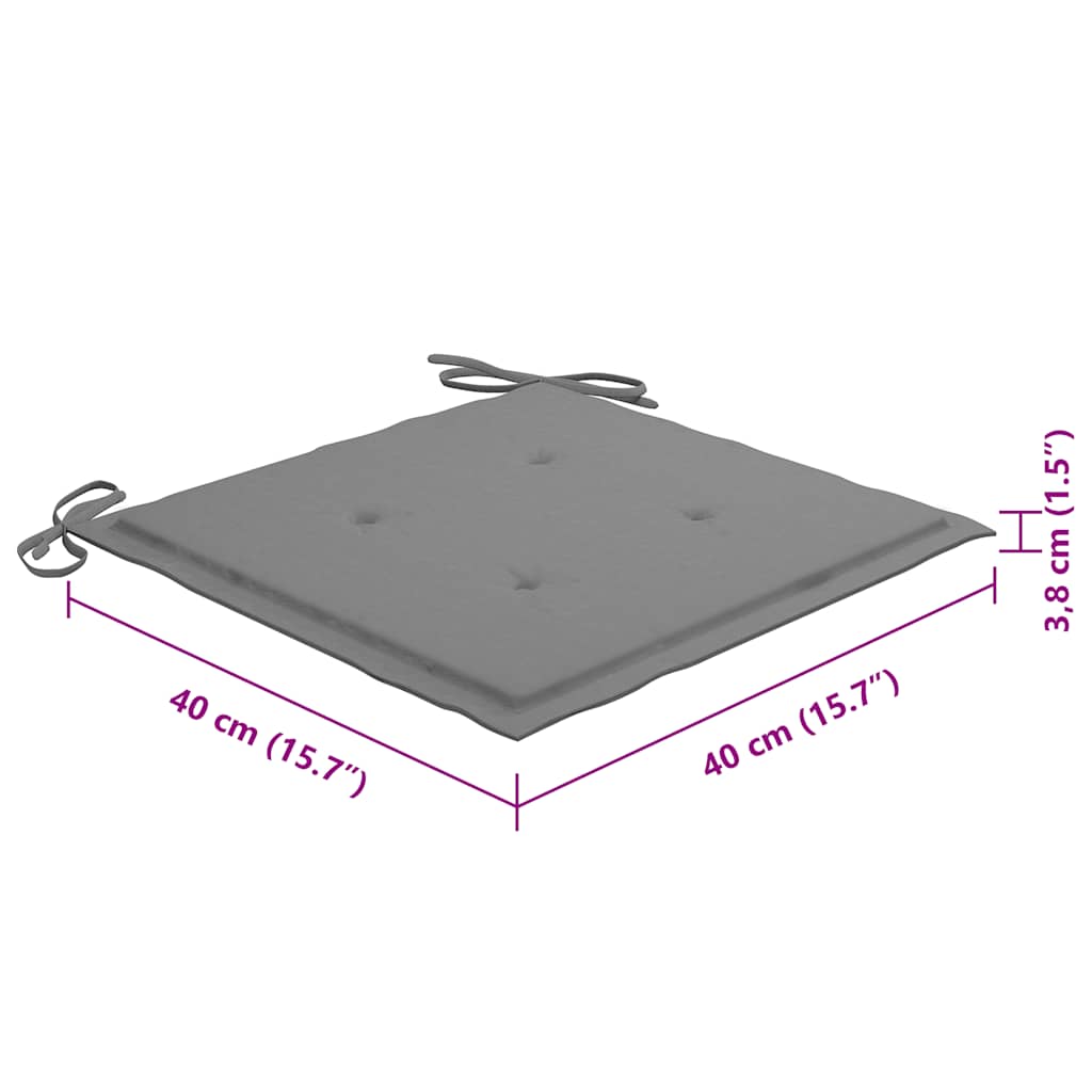 Queste sedie da pranzo sono realizzate in legno massello di acacia, un legno tropicale, che le rende resistenti agli agenti atmosferici e durevoli per anni di utilizzo. Il legno massello di acacia ha la forza di sopportare il peso e di resistere all'usura del tempo. La superficie grigio slavato è facile da pulire con un panno umido. Le sedie possono essere piegate per risparmiare spazio quando non vengono utilizzate. Inoltre, i cuscini inclusi offrono un comfort extra mentre ci si rilassa o si pranza. Ogni cuscino è dotato di due set di corde per poter essere fissato saldamente alla sedia.