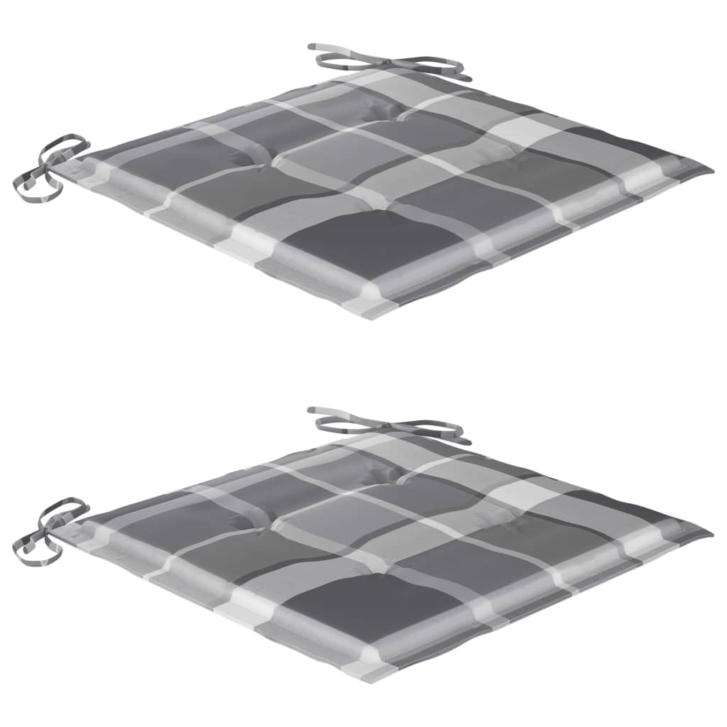Sedie Giardino 2 pz con Cuscini Grigi a Quadri Legno di Teak 3062744