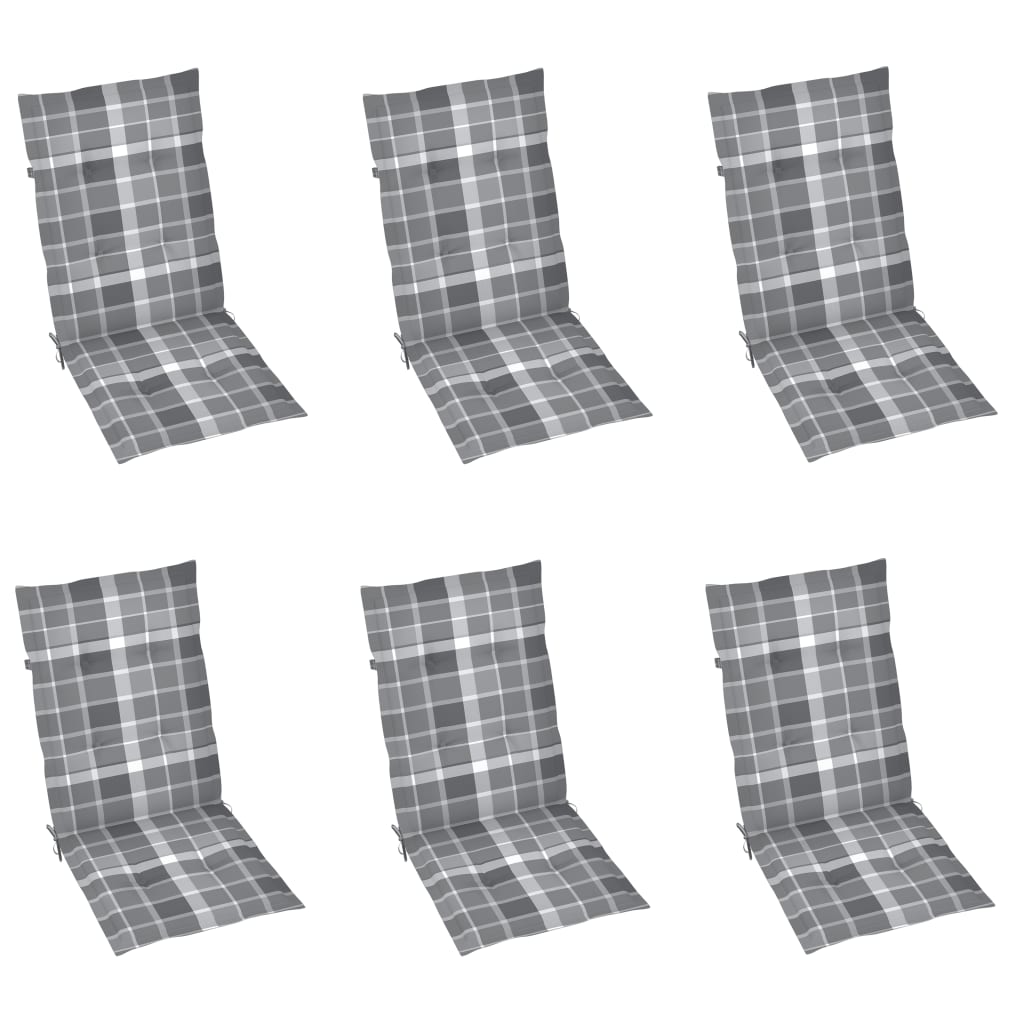 Sedie Giardino 6 pz con Cuscini Grigi a Quadri Massello di Teak 3065574