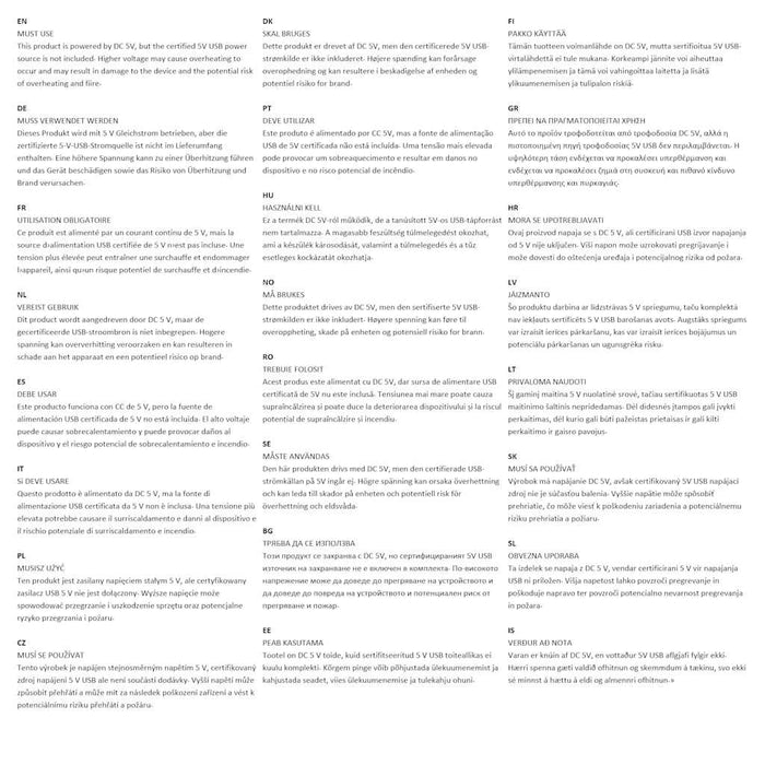 Nota:Questo prodotto è dotato di un connettore USB, ma la fonte di alimentazione da 5 V non è inclusa.