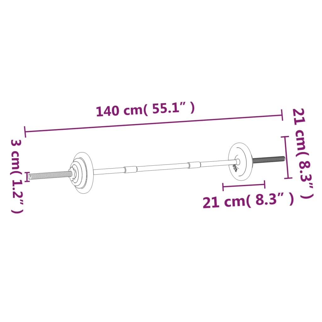- Dimensioni del bilanciere (dritto): 3 x 140 cm (Diametro x L)