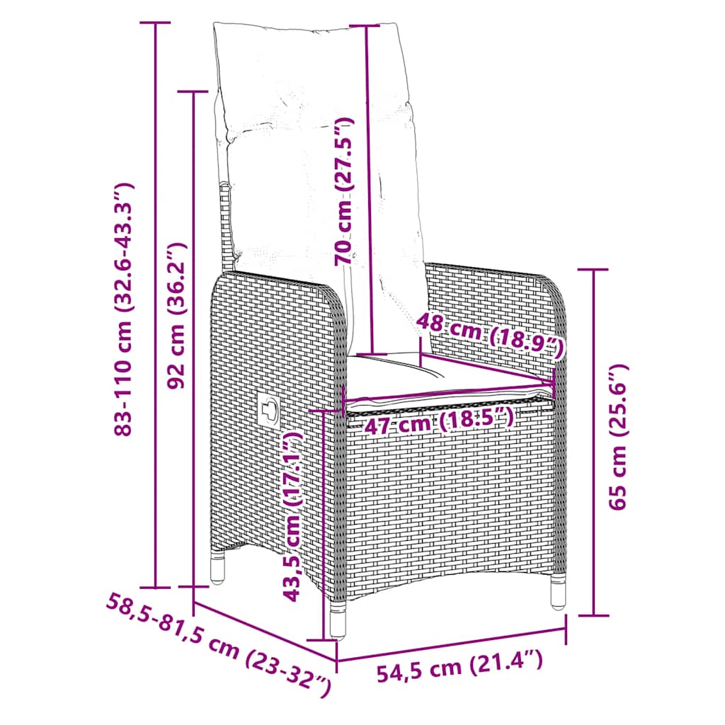 - Dimensioni quando reclinata: 54,5 x 81,5 x 83 cm (L x P x A)