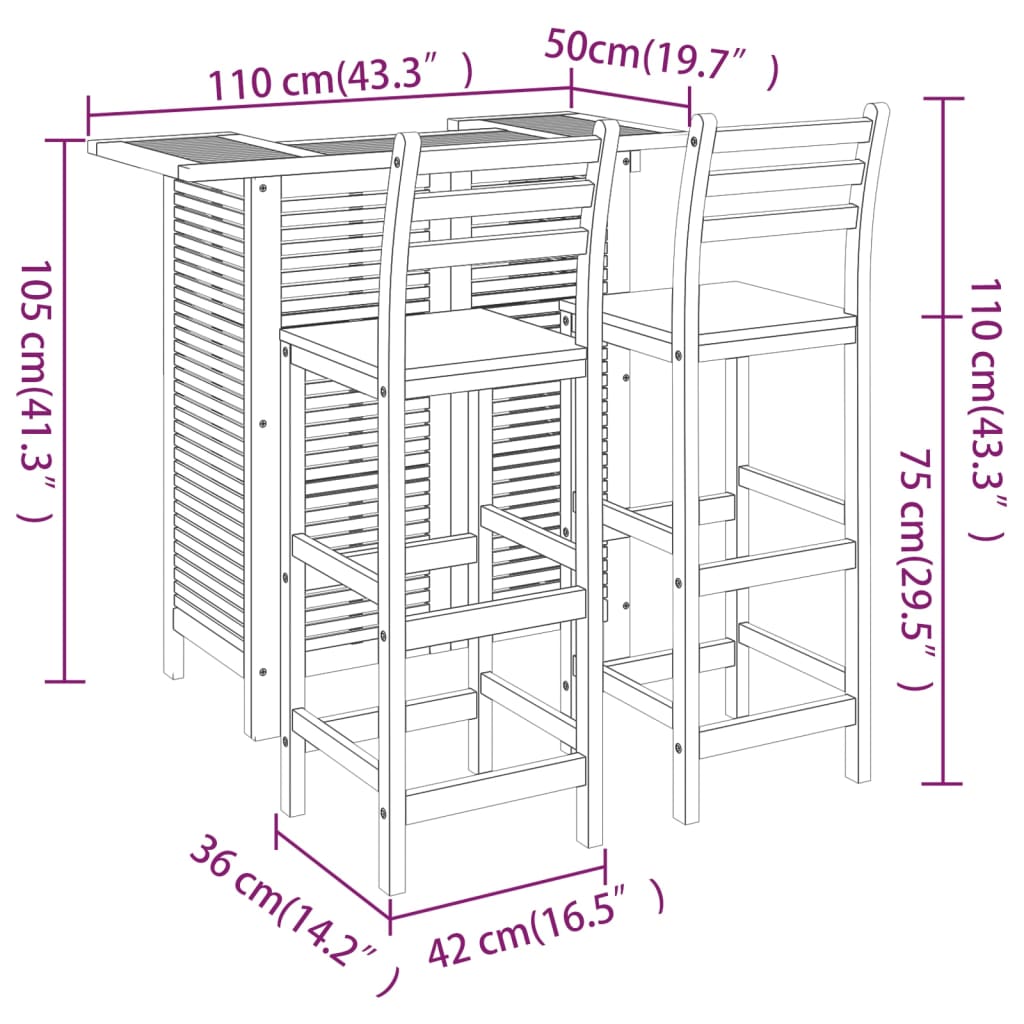 Set da Bar per Giardino 3 pz in Legno Massello di Acacia 3115998