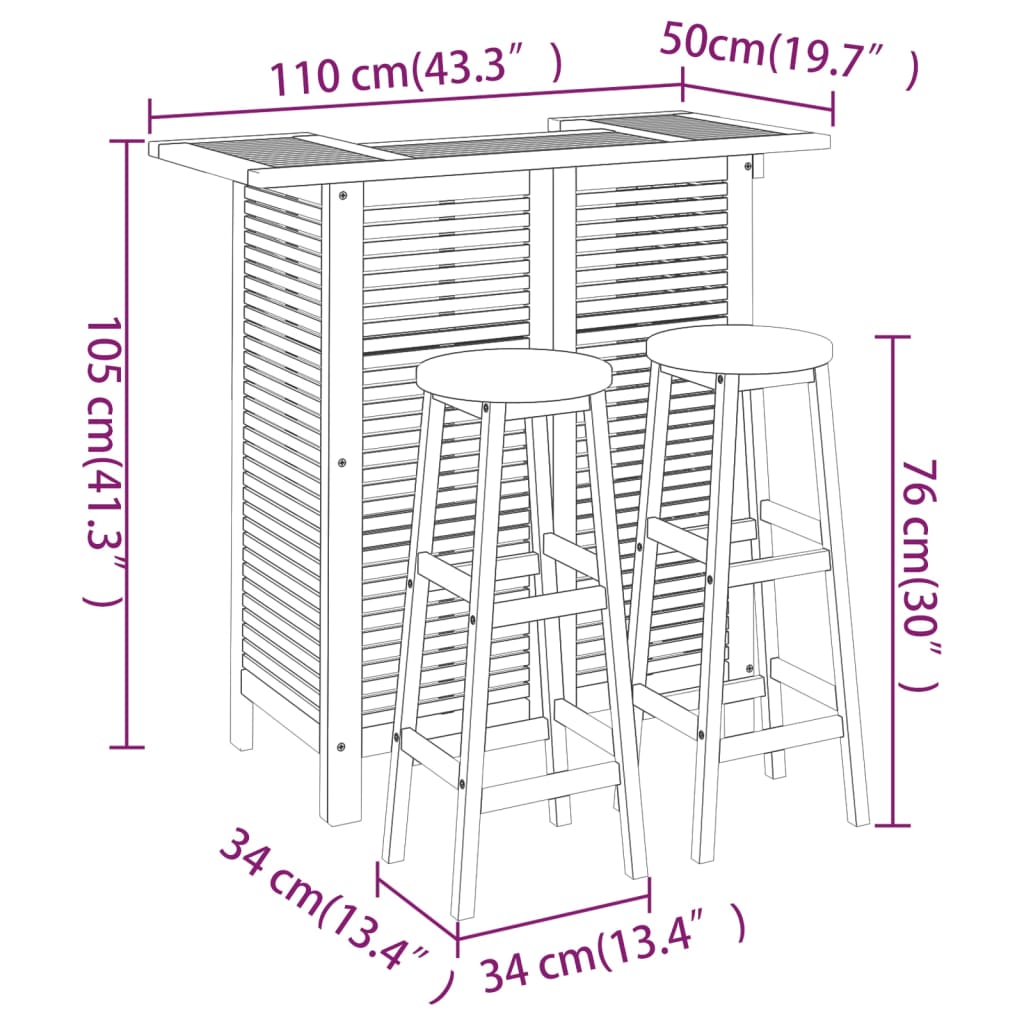 Set da Bar per Giardino 3 pz in Legno Massello di Acacia 3116000