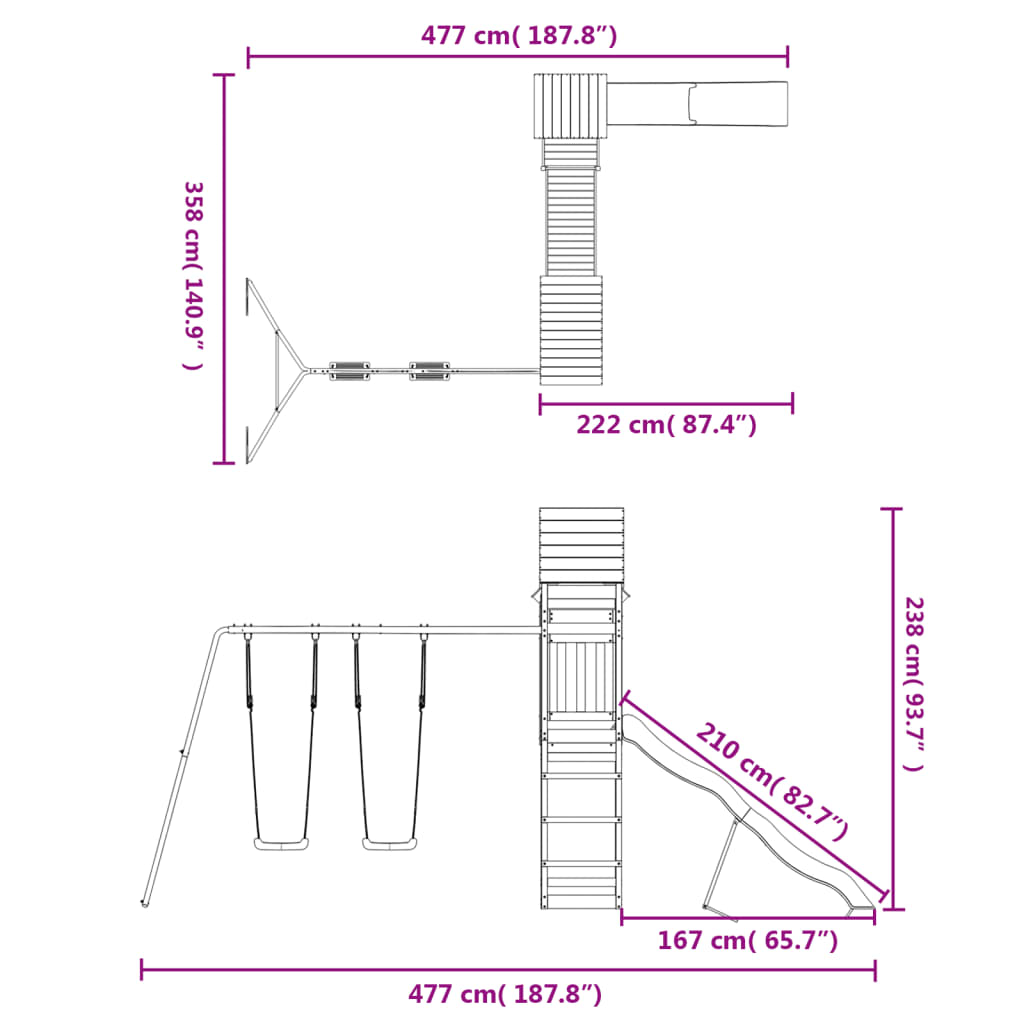 - Dimensioni altalena (ciascuna): 32 x 22 x 140 cm (L x P x A)