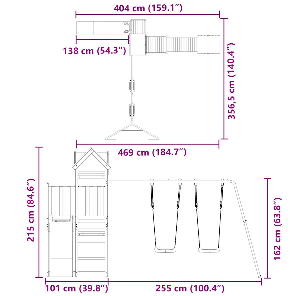- Centri multiattività: Il parco giochi è dotato di una piattaforma di 90 cm di altezza e si distingue per lo scivolo ondulato, un set di 2 altalene, una scaletta e sabbiere. I vostri piccoli possono anche invitare i loro amici a unirsi al divertimento.