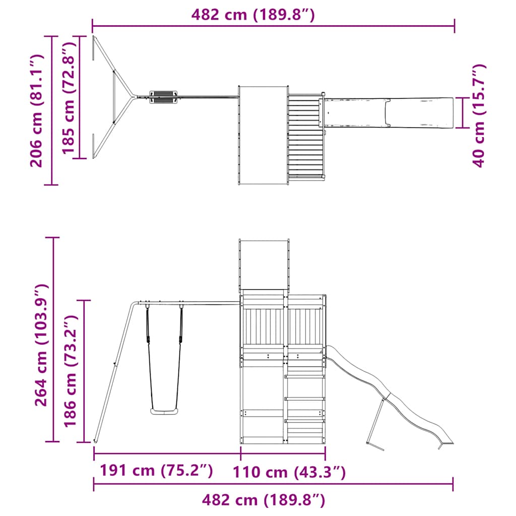 - Centri multiattività: Il parco giochi è dotato di una piattaforma di 118 cm di altezza e si distingue per lo scivolo ondulato, un'altalena singola e sabbiere. I vostri piccoli possono anche invitare i loro amici a unirsi al divertimento.