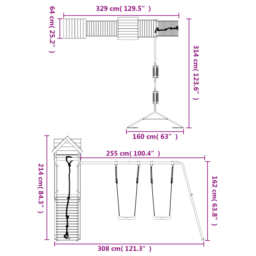 - Dimensioni altalena (ciascuna): 33 x 22 x 112,5 cm (L x P x A)