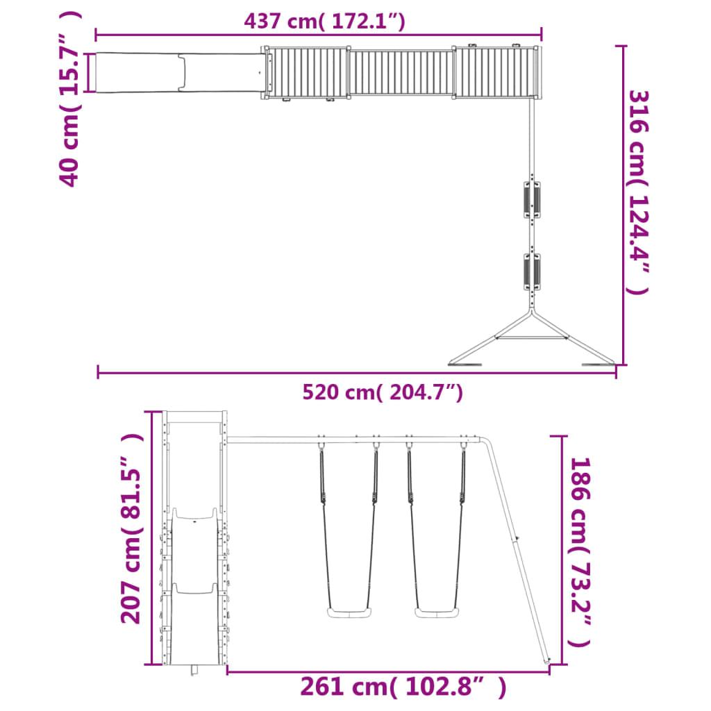 - Dimensioni altalena (ciascuna): 32 x 22 x 140 cm (L x L x A)