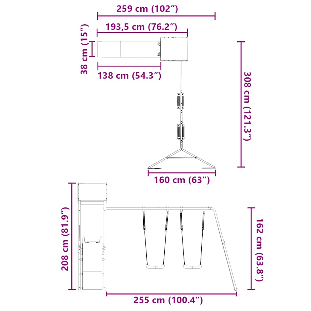 - Centri multiattività: Il parco giochi è dotato di una piattaforma di 90 cm di altezza e si distingue per lo scivolo ondulato, il set di 2 altalene e una sabbiera. I vostri piccoli possono anche invitare i loro amici a unirsi al divertimento.