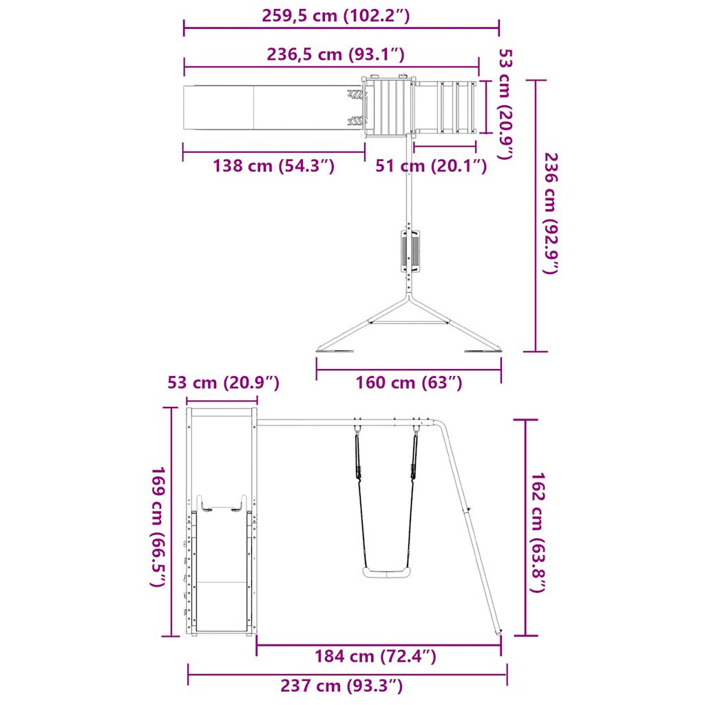 - Dimensioni altalena (ciascuna): 33 x 22 x 113 cm (L x P x A)