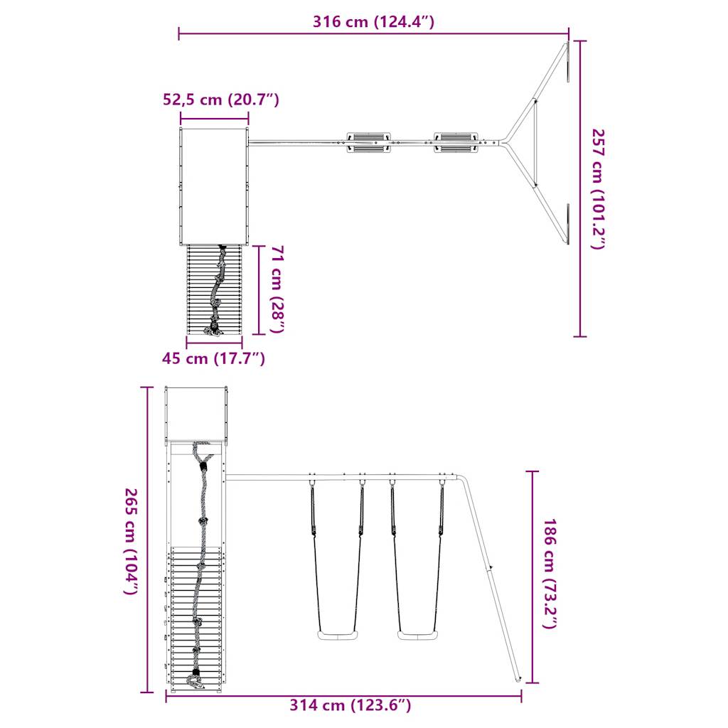 - Materiale durevole: Questo parco giochi da giardino è realizzato in legno massello di pino. Il legno massello di pino è noto per la sua resistenza e durata. Le sue venature dritte e i suoi nodi caratteristici contribuiscono al suo fascino rustico.