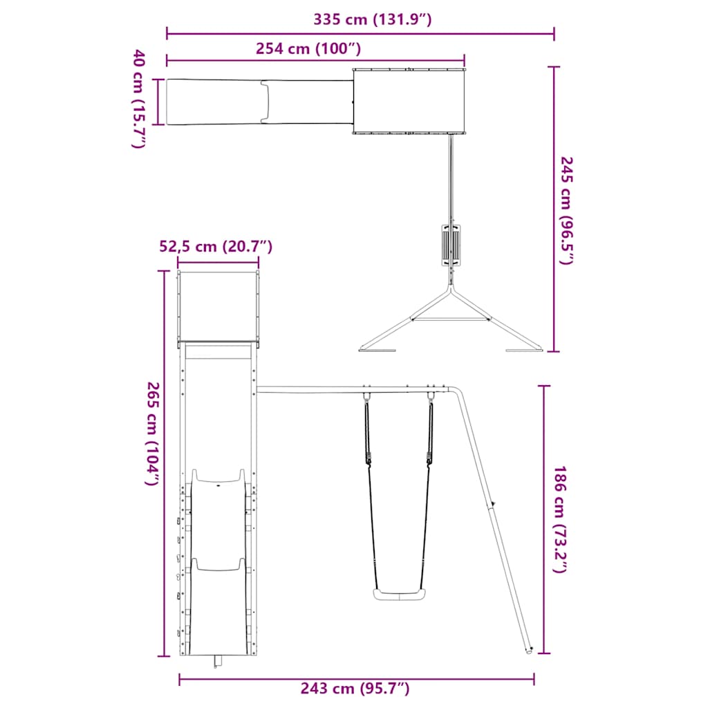 - Dimensioni complessive: 245 x 335 x 265 cm (L x L x A)