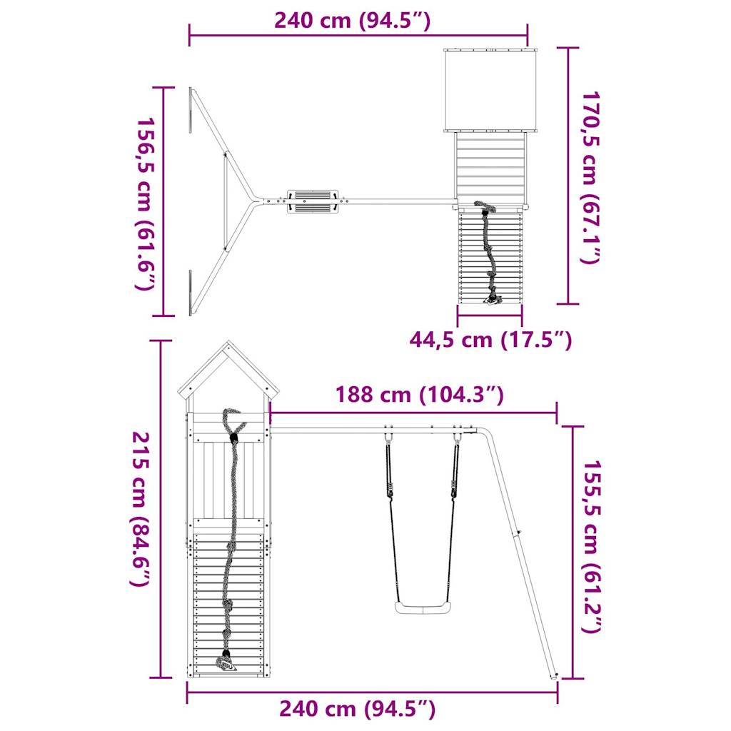 - Materiale durevole: Questo parco giochi da giardino è realizzato in legno massello di pino. Il legno massello di pino è noto per la sua resistenza e durata. Le sue venature dritte e i suoi nodi caratteristici contribuiscono al suo fascino rustico.