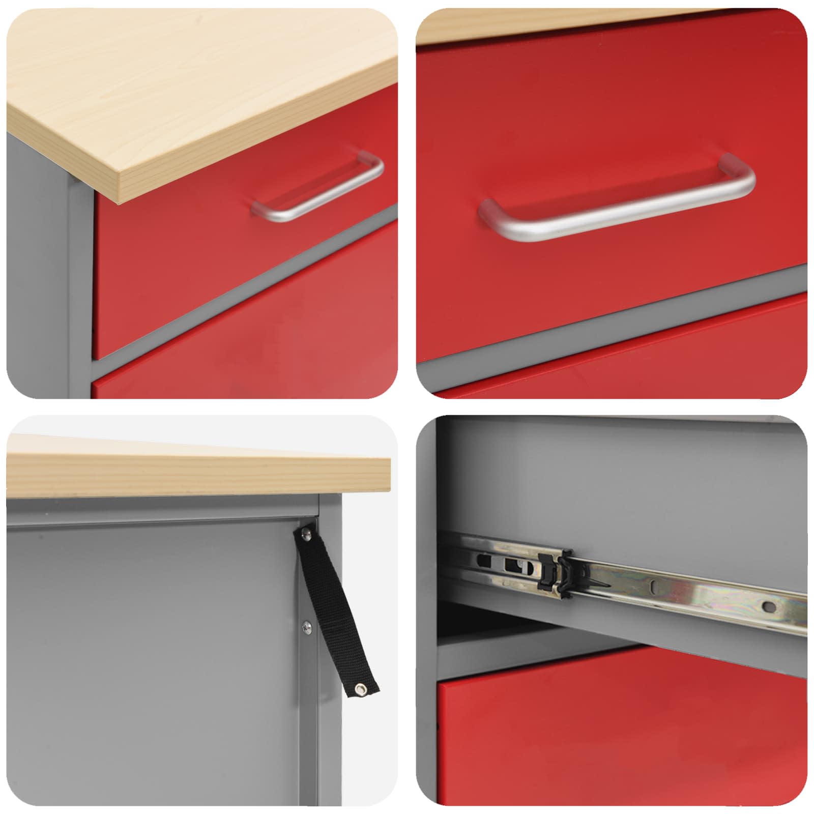 - Telaio in acciaio: Fatto in legno ingegnerizzato e acciaio, questo armadietto è robusto e duraturo, perfetto per il tuo spazio di lavoro. La struttura forte rende sicuro riporre attrezzi pesanti senza preoccupazioni. Anche se è resistente, ha un aspetto elegante, migliorando l'estetica della tua officina. Mantenere pulito basta usarci un panno umido.