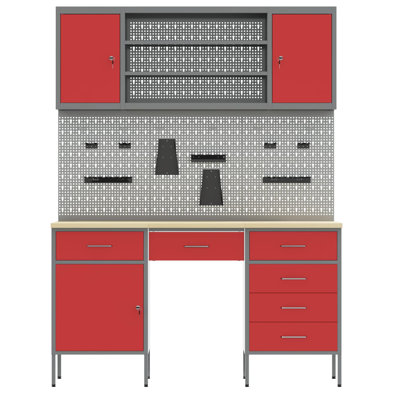 Mobile da lavoro 8 pcs Rosso Legno ingegnerizzato e acciaio 3321467