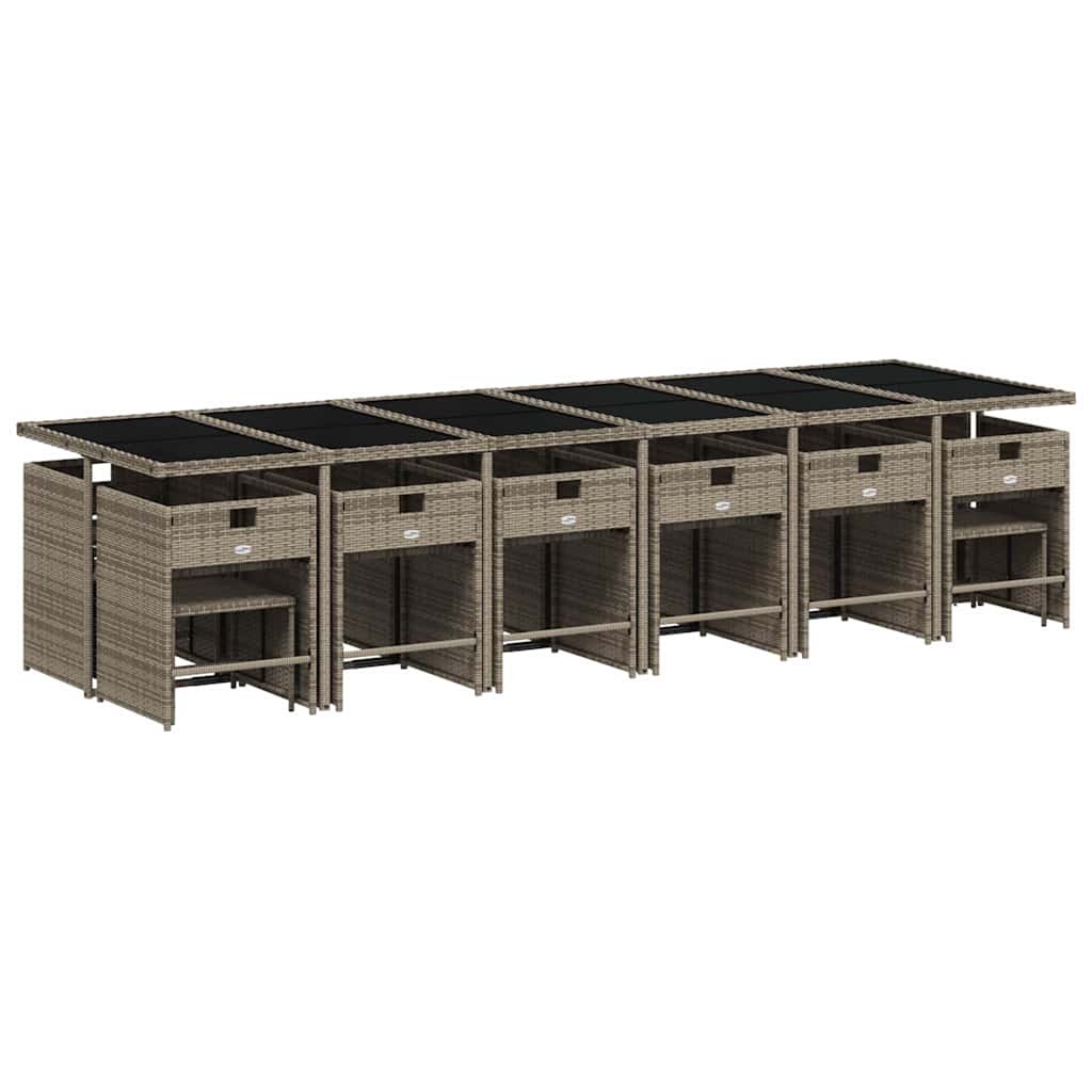 Set da Pranzo da Giardino 17pz con Cuscini Grigio in Polyrattan 3211184